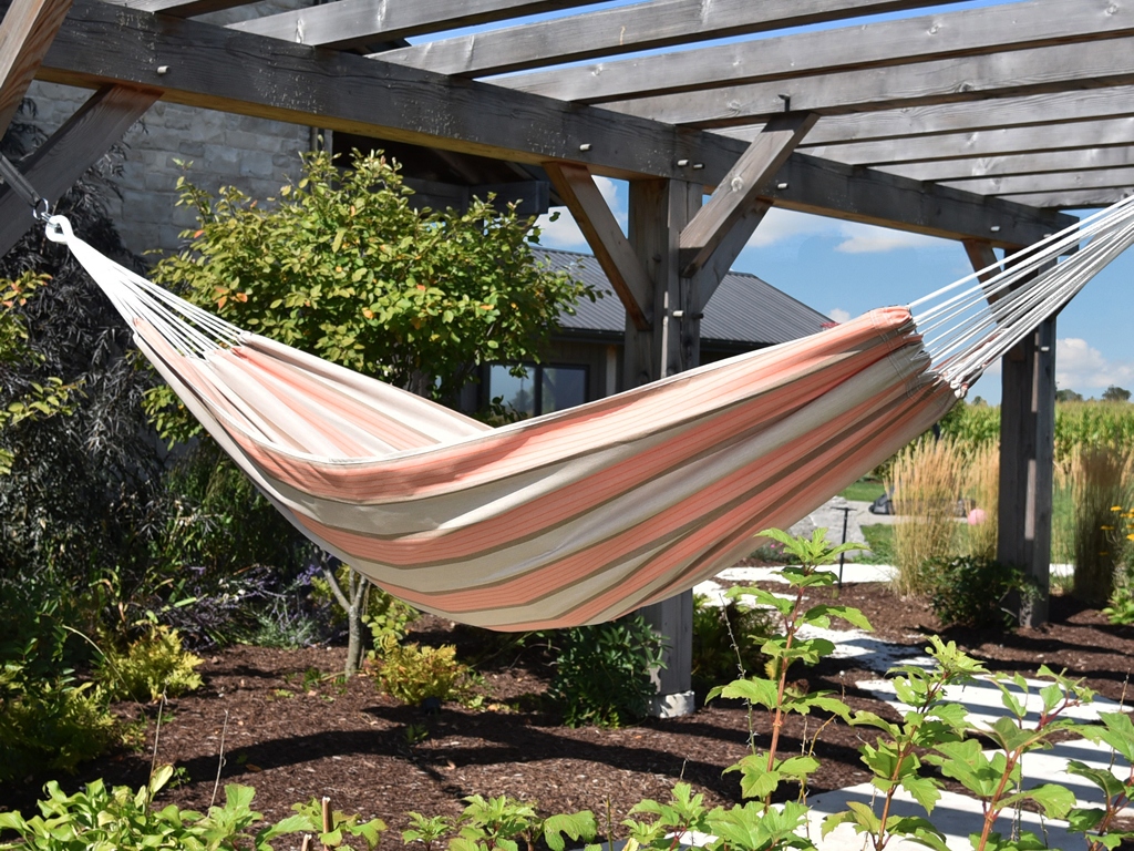 Ten hamak będzie się pięknie prezentował w ogrodzie lub tarasie.